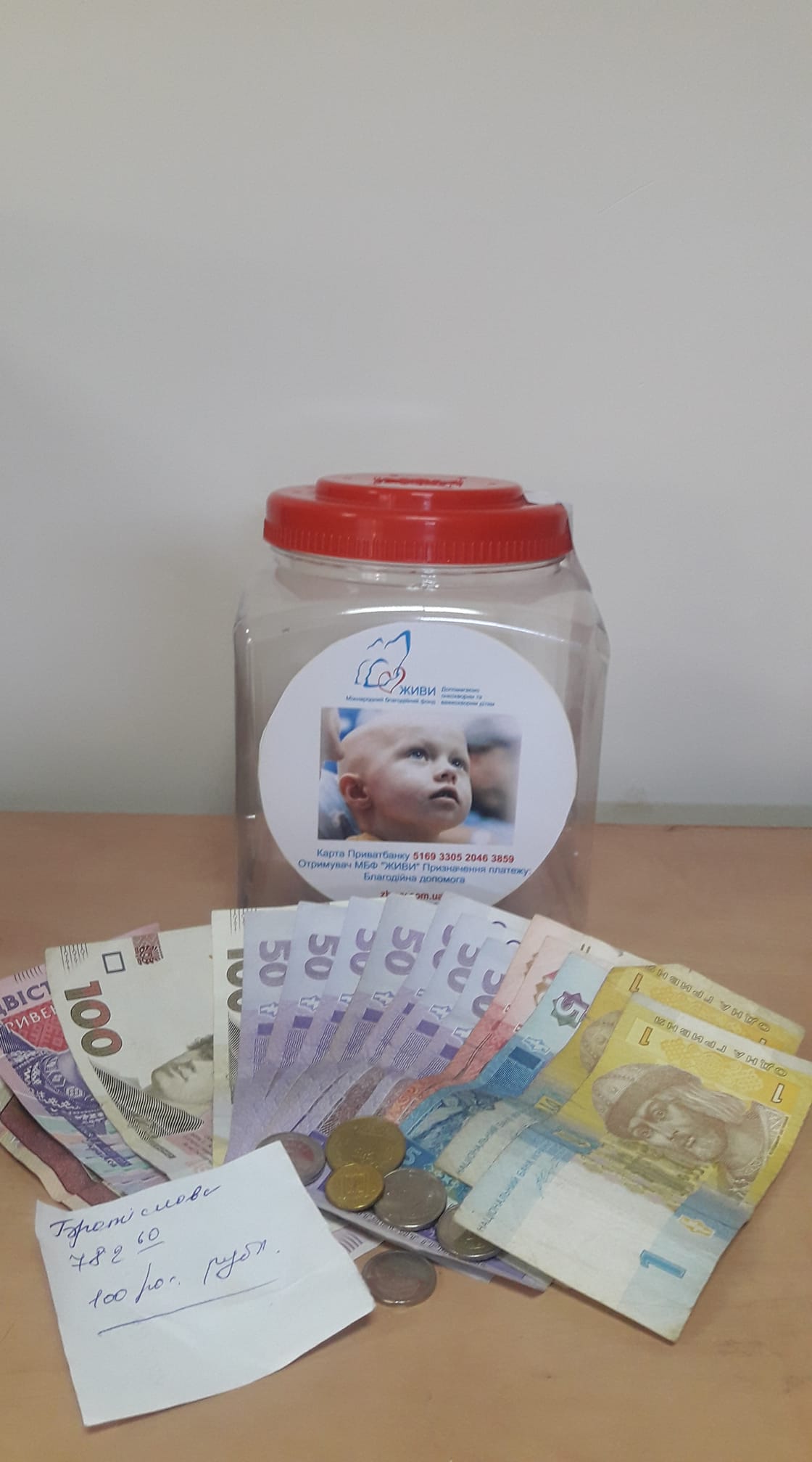 Всі вилучені зі скриньки кошти - 782грн. 60коп. будуть спрямовані на придбання сетів для тромоконцентрату у дитяче онкогематологічне відділення м.Тернополя.