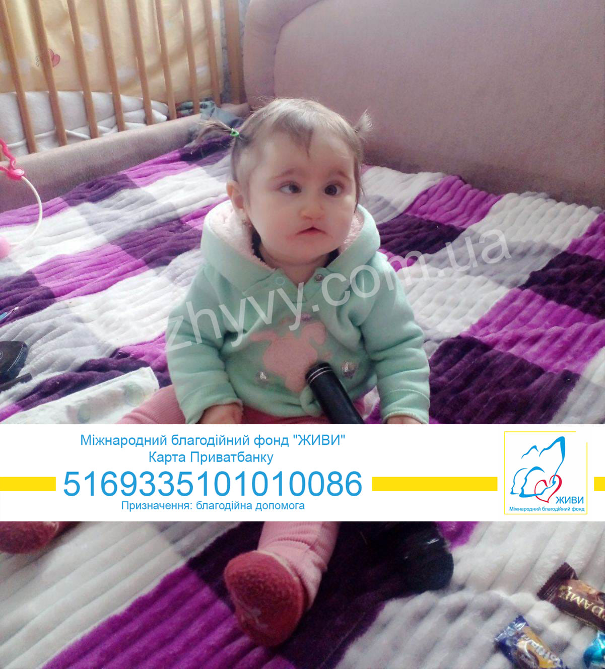 Маленька Марічка за неповних два роки життя перенесла вже три операції. Дівчинка народилася з повною розщілиною верхньої губи та розщілиною м'якого і твердого піднебіння.Така вада потребує обов'язкового хірургічного втручання, яке допоможе дитині бути повністю здоровою.