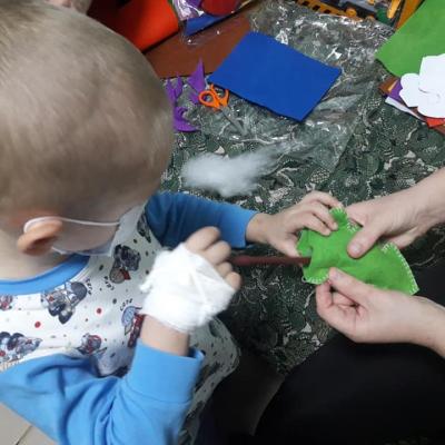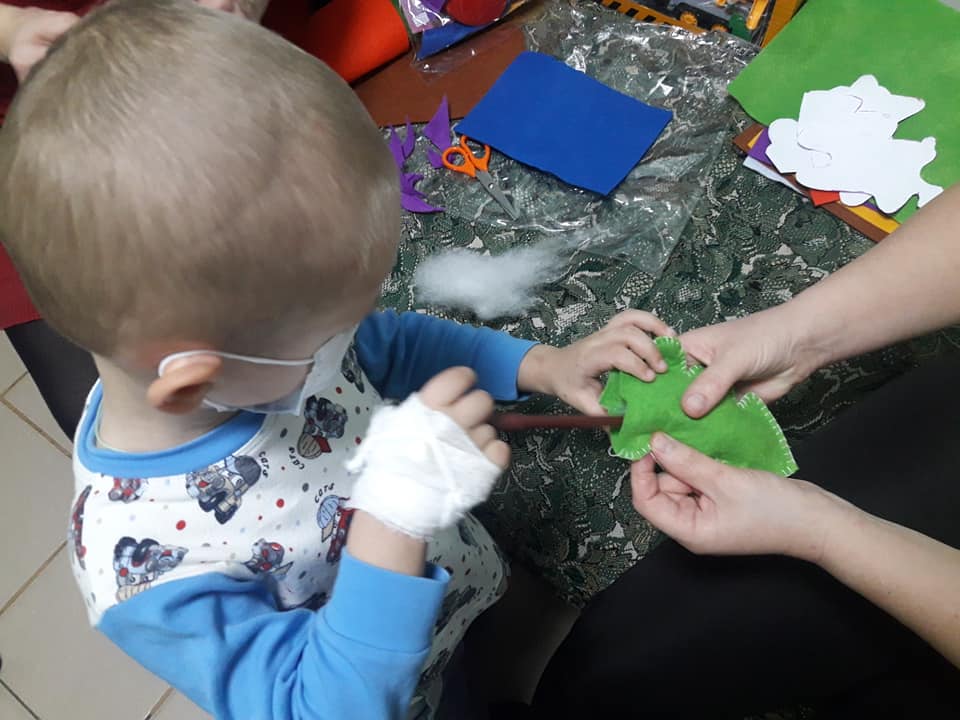 Дімон, який дуже любить все що пов'язане з динозаврами, зробив з мамою фетрового динозаврика. До речі, хлопчик вже закінчив основне лікування і за кілька днів нарешті йде додому. Тепер йому потрібно буде протягом року приймати хімію в таблетках і проходити обстеження. Але найважче уже позаду і ми всі щиро радіємо за Діму?