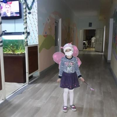 На жаль, Ромчик та Ігорчик були під'єднані до крапельниць і не могли брати участь у всьому процесі створення хатинок. А ось Юля і будувала, і прикрашала, і ще й встигла побувати казковим рожевим метеликом?