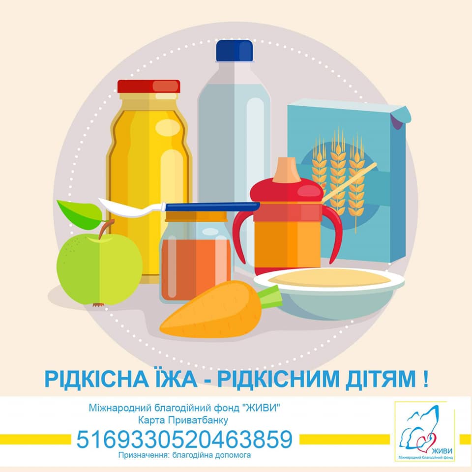 "Рідкісна їжа рідкісним дітям" це проект МБФ "ЖИВИ", метою якого є забезпечення спеціалізованим медичним харчуванням дітей з орфанними(рідкісними) захворюваннями. На жаль, такі хвороби є невиліковними.