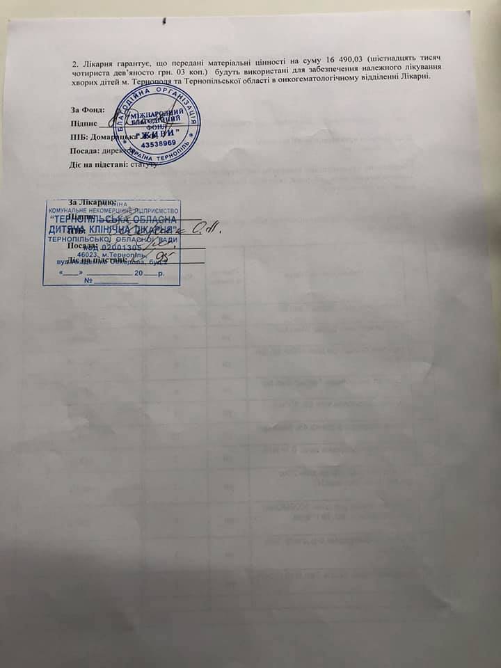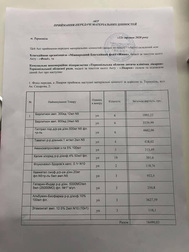 Придбали і доставили у відділення дитячої онкогематології медпрепаратів на суму 16490грн.