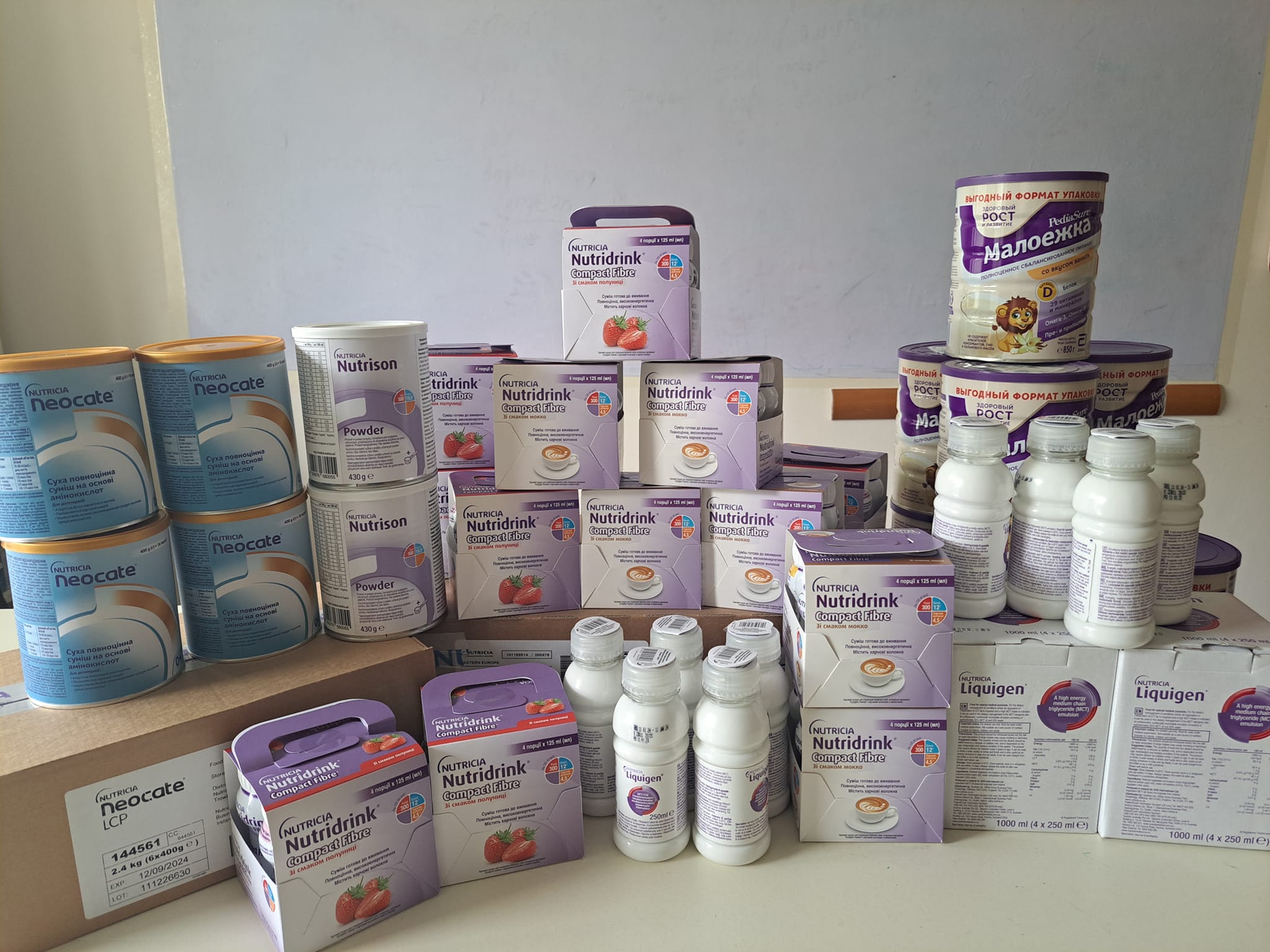 На цьому фото місячний запас життєвонеобхідної спеціальної їжі для Міленки, Теодора і Таїсії.